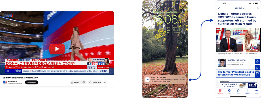 • Engagement sparks: GB News turned passive viewers into active participants by connecting linear TV with online discussions. Take a leadership debate, for example—why just watch it when you can join the conversation?