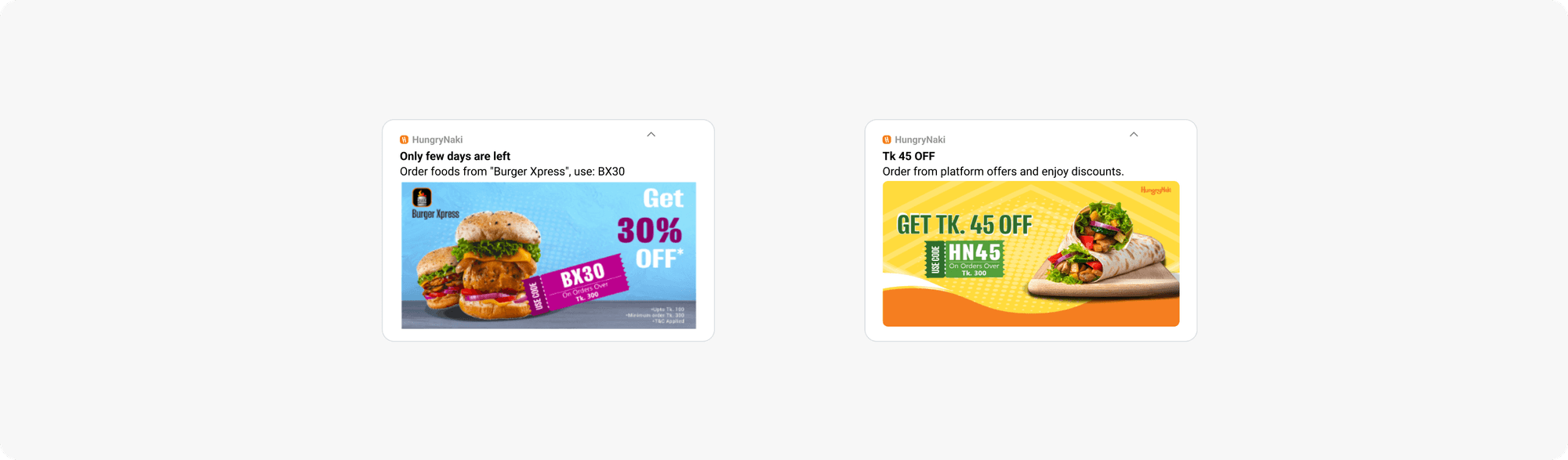 • Tailored offering: To keep these engaged users coming back for more, HungryNaki sent rich push notifications—visually striking messages that stood out on user screens.