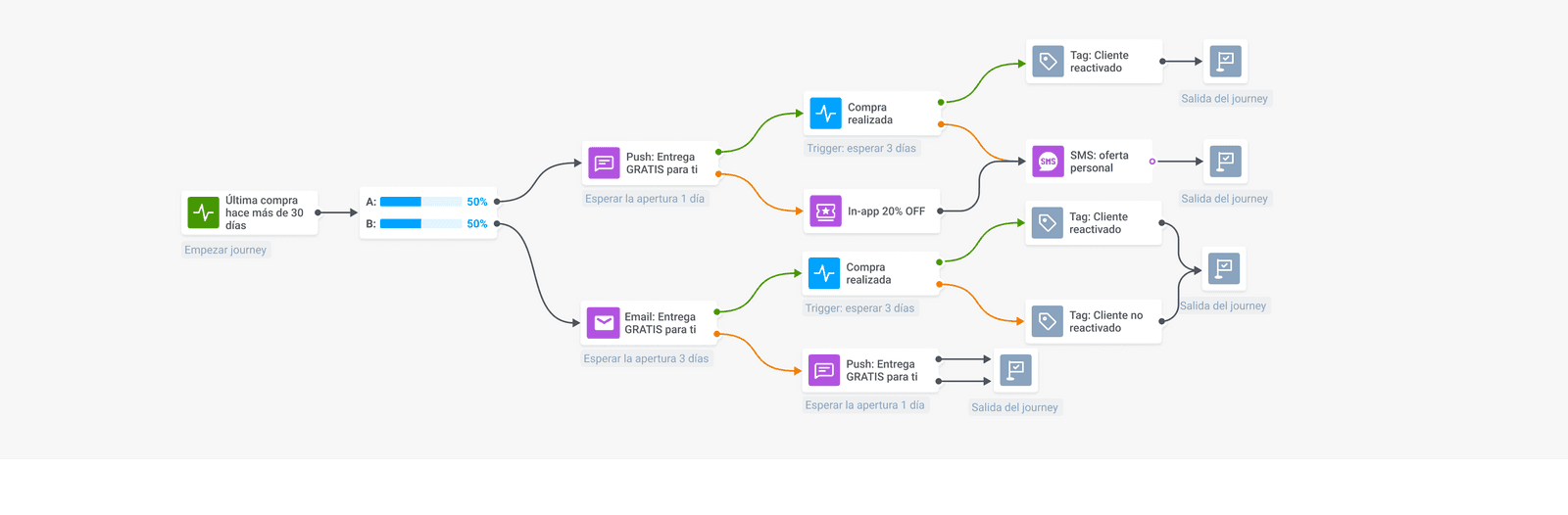 Gracias a la estrategia de comunicación omnicanal basada en el comportamiento del usuario individual, aseguras a tus usuarios y clientes que obtendrán una interacción coherente y cohesiva con la marca. Esto es clave para fomentar la lealtad y la retención a largo plazo.
