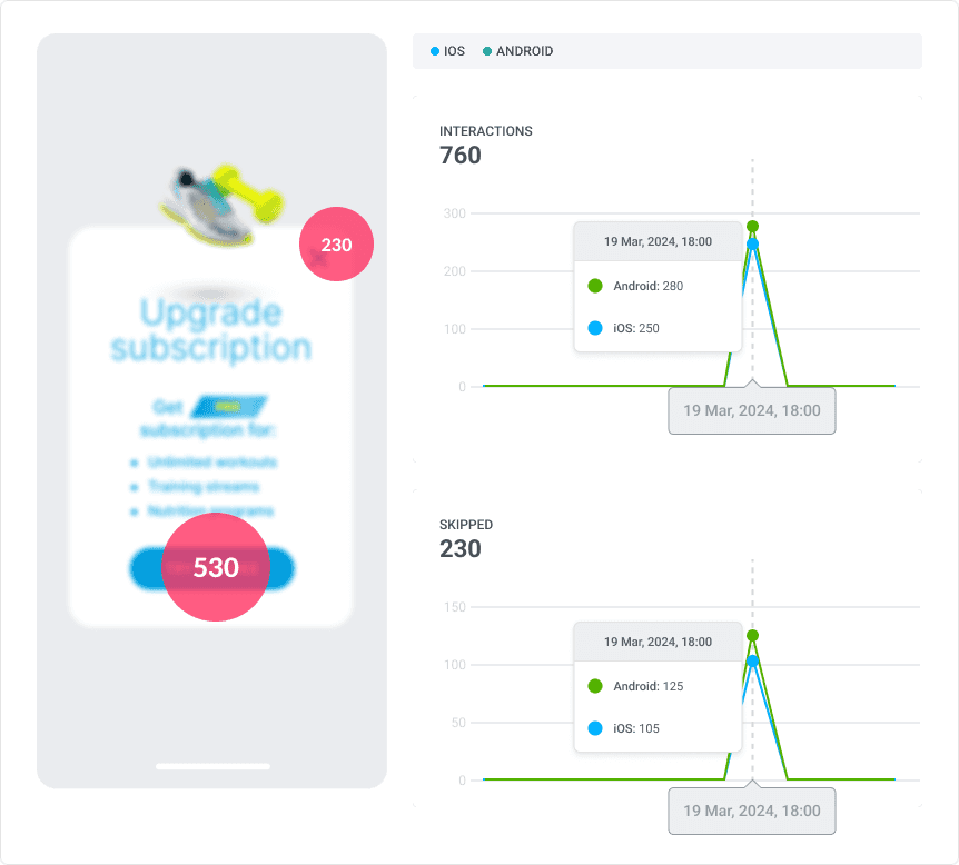 It lets you assess the distribution of all clicks on the in-app message—and optimize your creatives.
