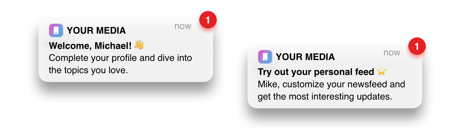 Onboarding via push notifications and emails works great for user retention. Remind users about your app by delivering your message to the lockscreen. Your users will notice it even if they haven’t launched your app for a while.